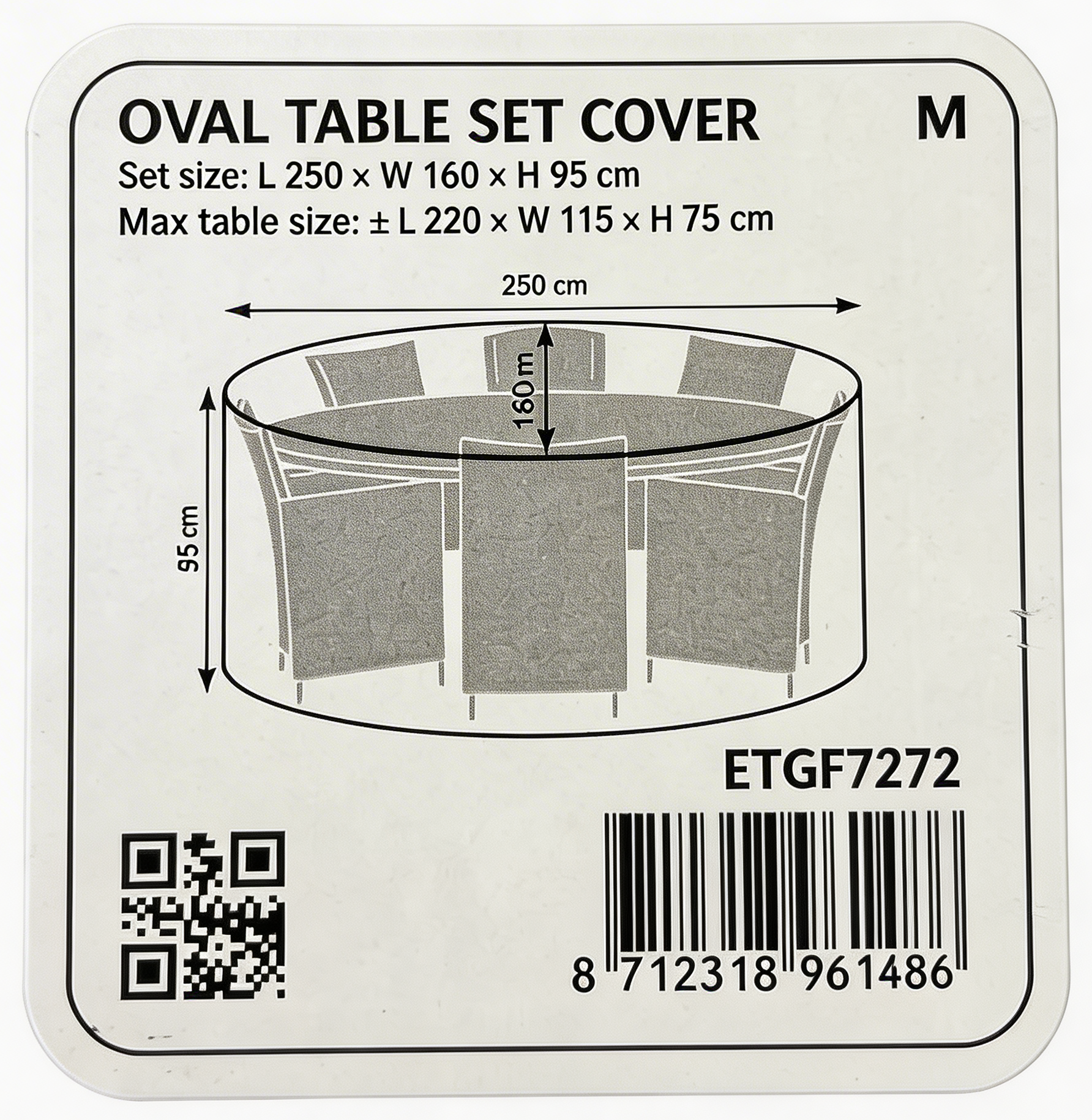 | Anvendelse: | Velegnet til beskyttelse af ovale havemøbelsæt i udendørssæsonen |
