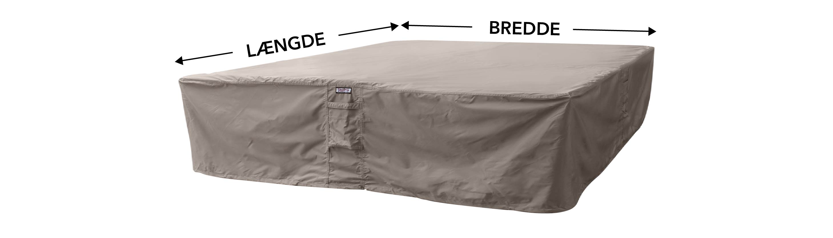 When finding a cover for your rectangular or square garden furniture, always start with a 'Længde' and a 'Bredde' measurement. Based on this, you can find a suitable garden furniture protection cover.
