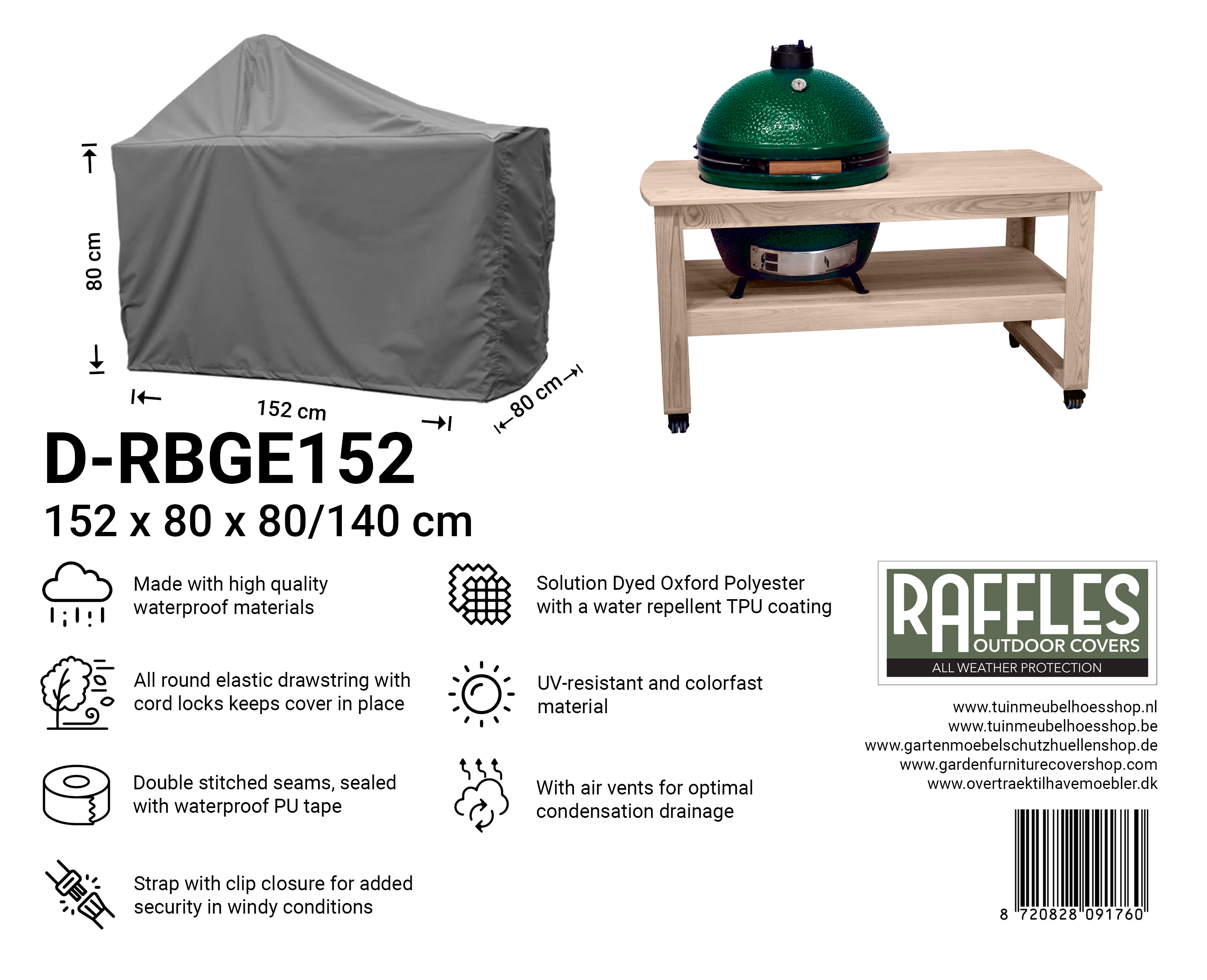 Produkt Specifikationer "Raffles Covers Big Green Egg / kamado grillovertræk med bord"