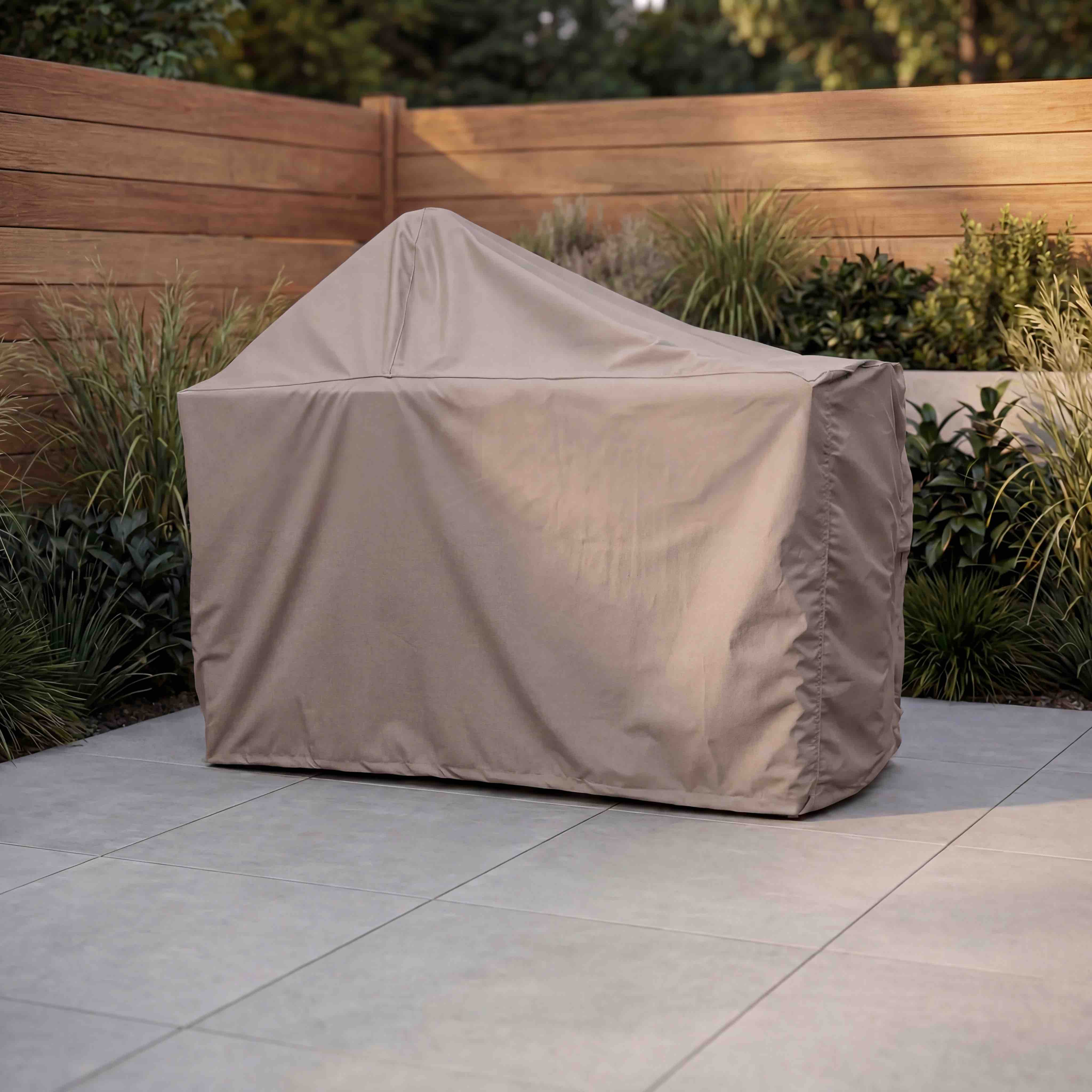 Langs underkanten kan overtrækket justeres, så det kan trækkes tæt omkring bordet og har mindre tendens til at blæse op. Polstrede håndtag gør det behageligt at tage overtrækket af og på, og det smidige stof er let at håndtere, men føles samtidig solidt. Efter brug kan du opbevare overtrækket i den medfølgende opbevaringstaske. Står dit udekøkken meget åbent og vindudsat, kan du efter behov sikre overtrækket ekstra med tilbehør som sandsække, elastiksnore, bungees eller klemmer.