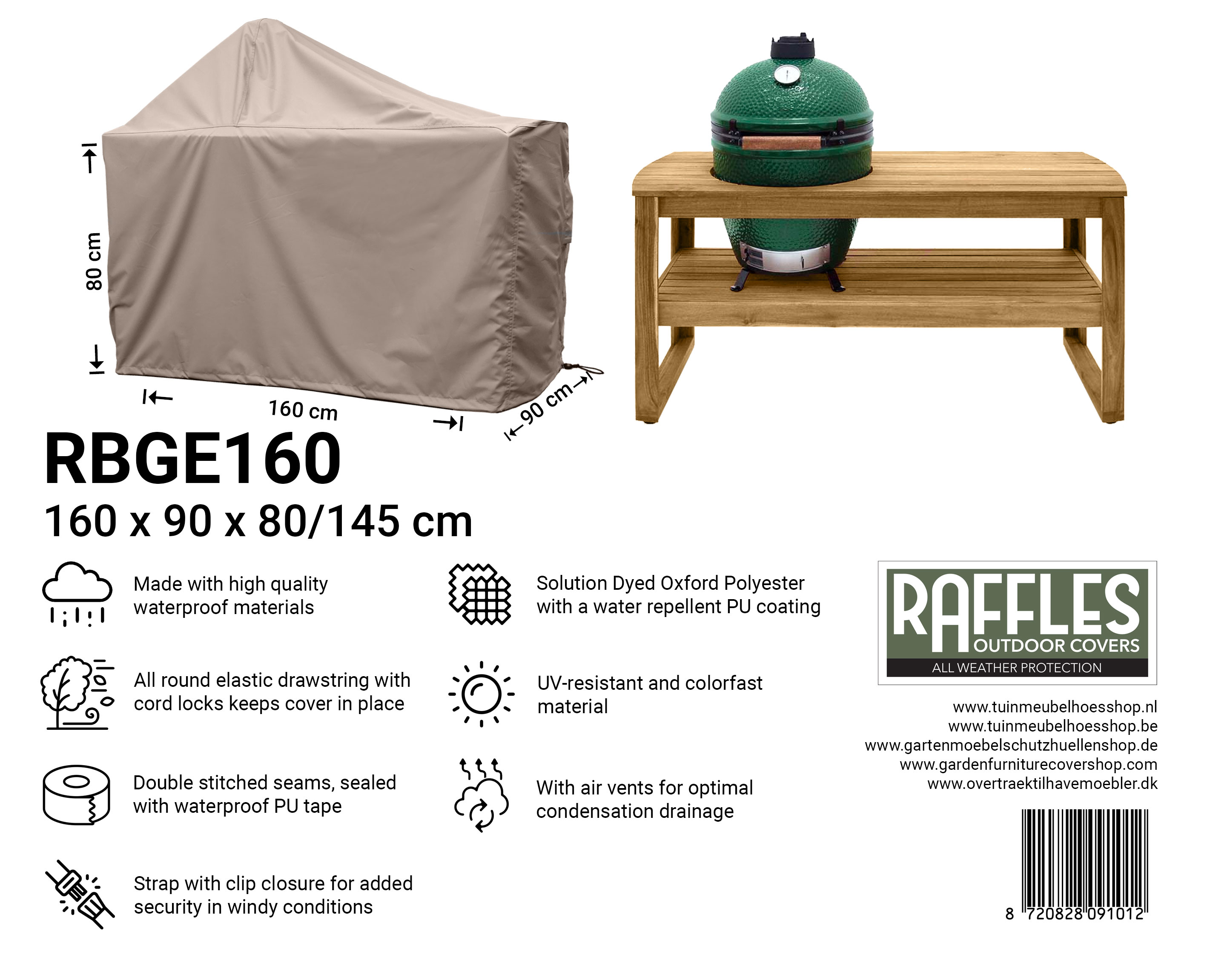 Produkt Specifikationer "Raffles Covers Big Green Egg / kamado grillovertræk med bord"