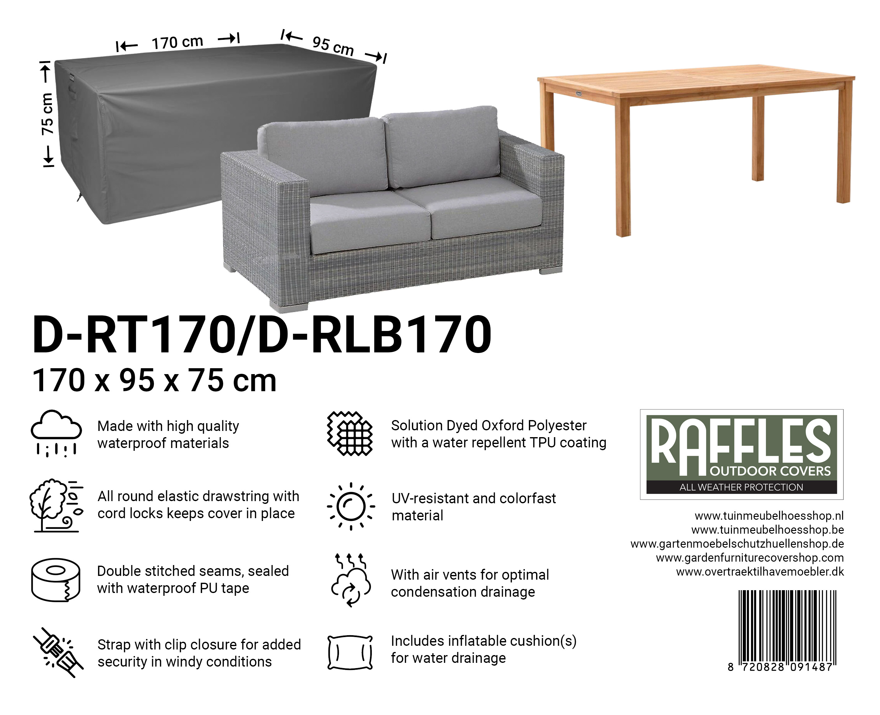 Med et Raffles Covers havebordsovertræk fra RT-serien vælger du gennemtænkt, holdbar og stilfuld beskyttelse til dit havebord, så du kan nyde have og terrasse ubekymret i alle sæsoner.