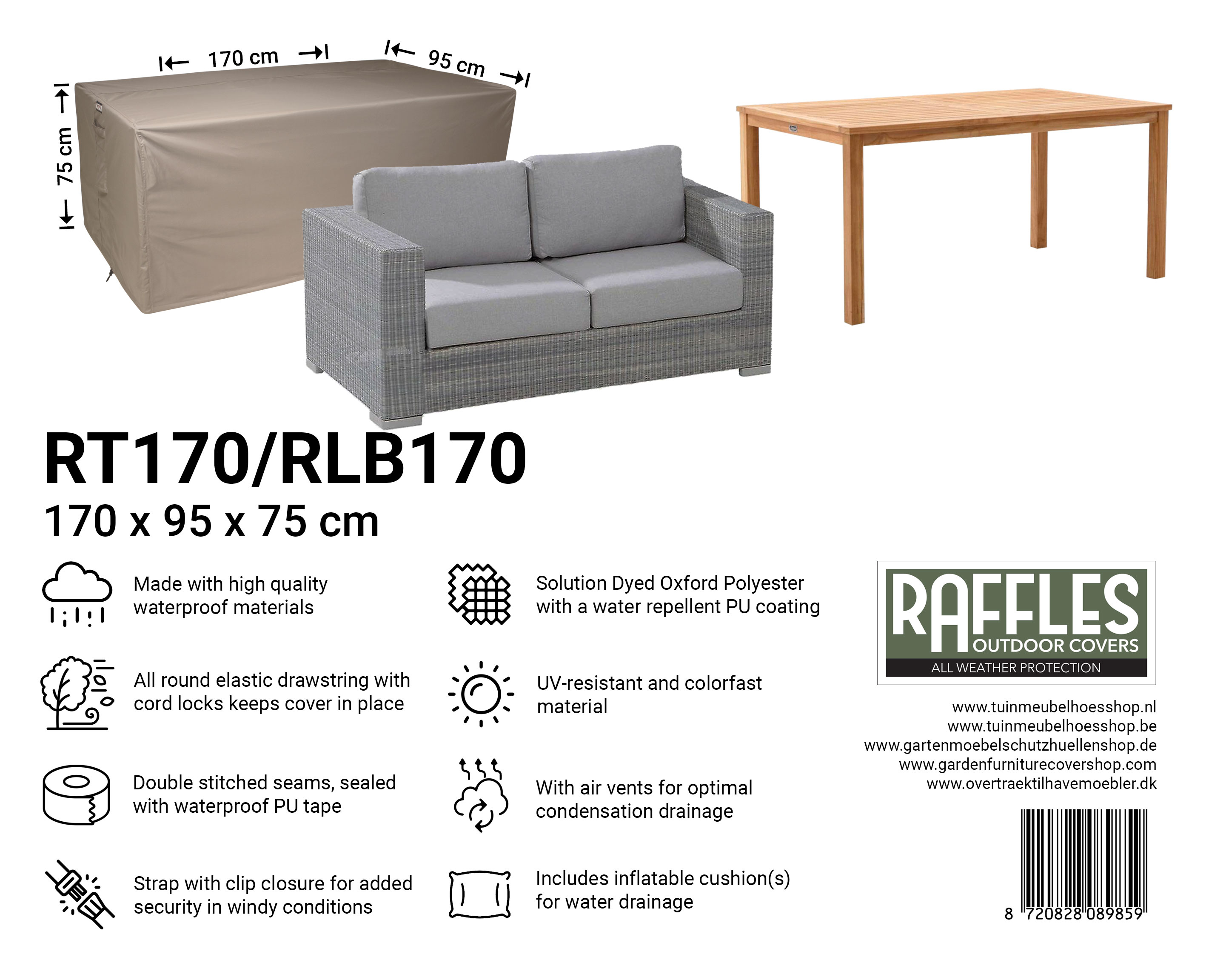 Med et Raffles Covers havebordsovertræk fra RT-serien vælger du gennemtænkt, holdbar og stilfuld beskyttelse til dit havebord, så du kan nyde have og terrasse ubekymret i alle sæsoner.