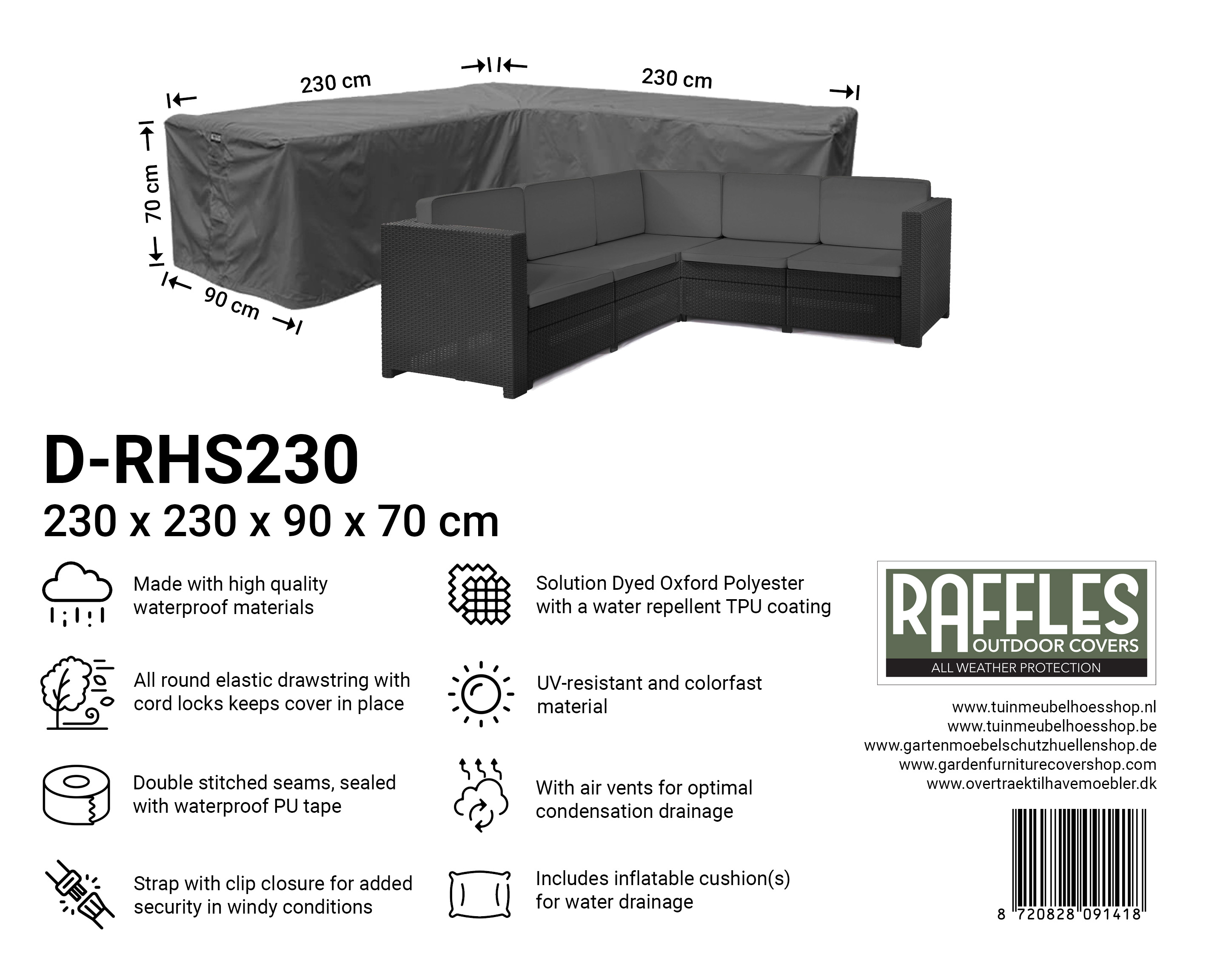 Specifikationer for Raffles Covers RHS-serien – overtræk til lounge-hjørnesofaer