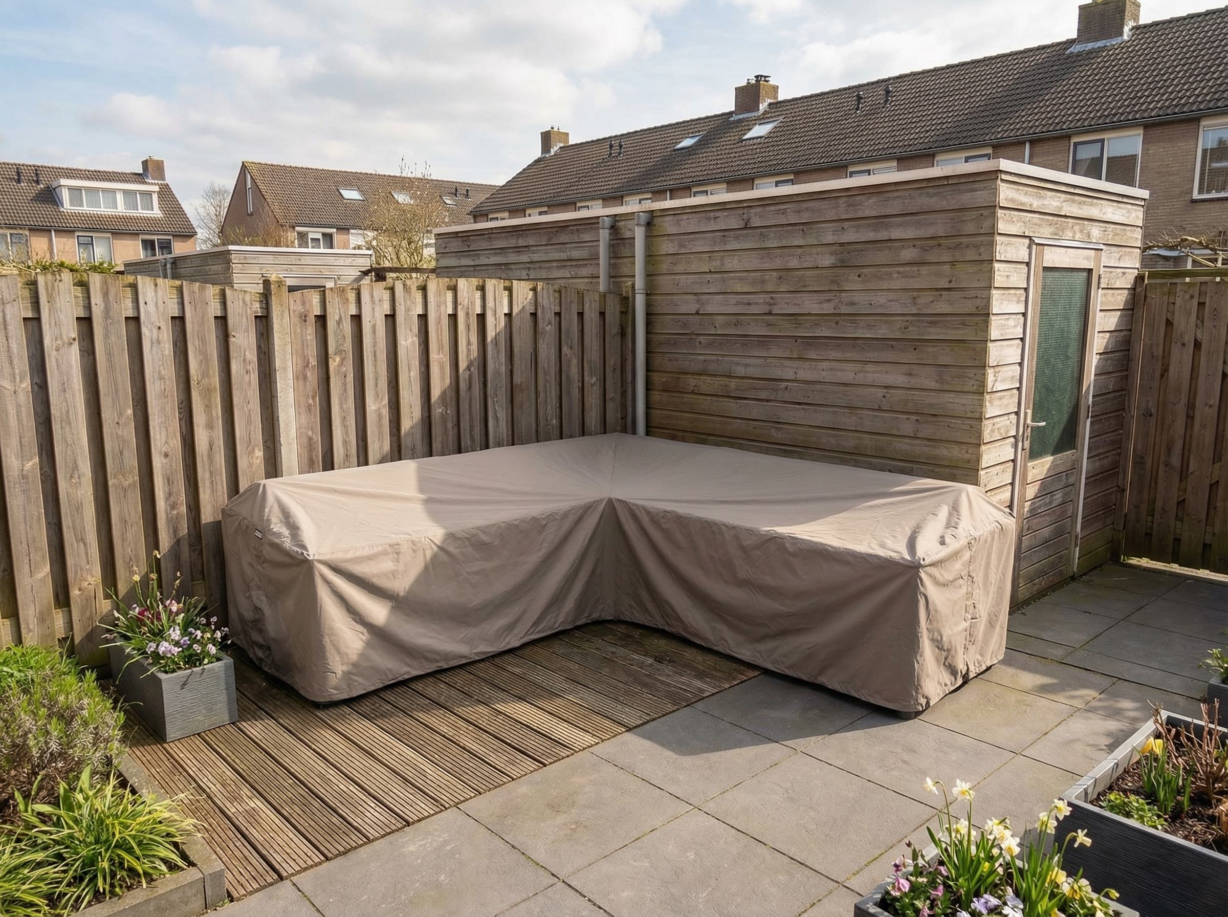 Står din hjørnesofa meget udsat for vind, f.eks. på en tagterrasse eller i en åben have? Så kan du kombinere betrækket med sandsække, elastikstropper eller klemmer for ekstra ballast og fastgørelse. På den måde bliver betrækket siddende, selv i hård blæst.