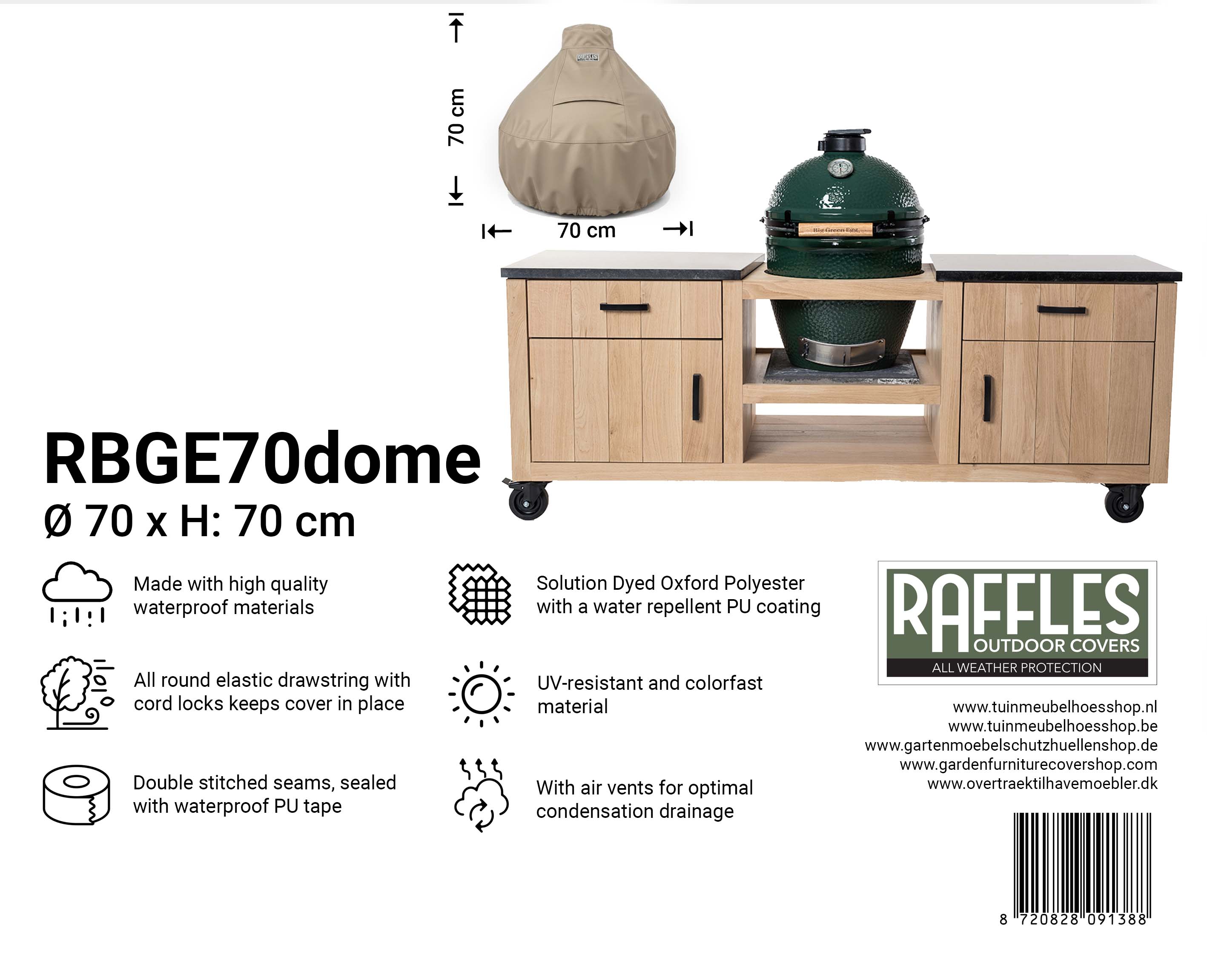 Produkt Specifikationer "Raffles Covers rund Kamado Overtræk til Big Green Egg & Keramiske Grills"