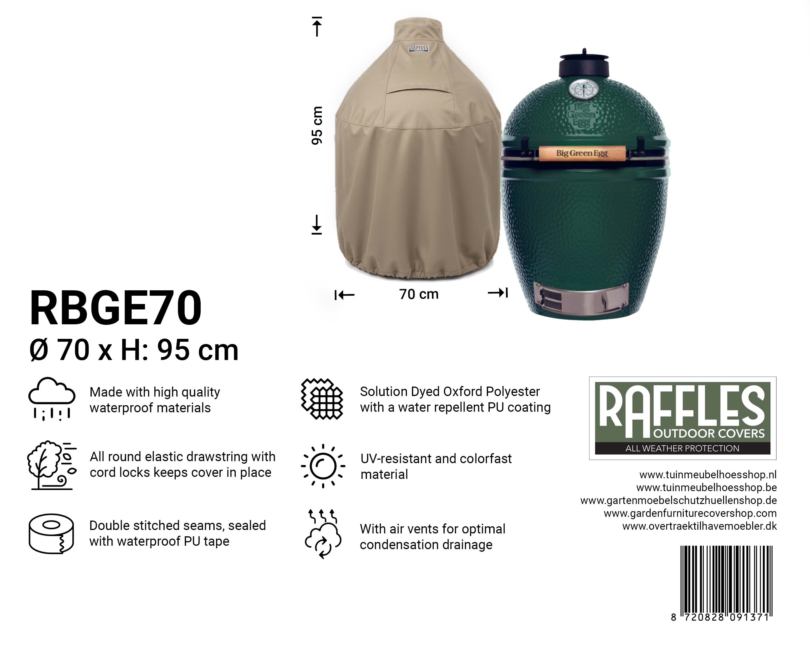 Produkt Specifikationer "Raffles Covers rund Kamado Overtræk til Big Green Egg & Keramiske Grills"
