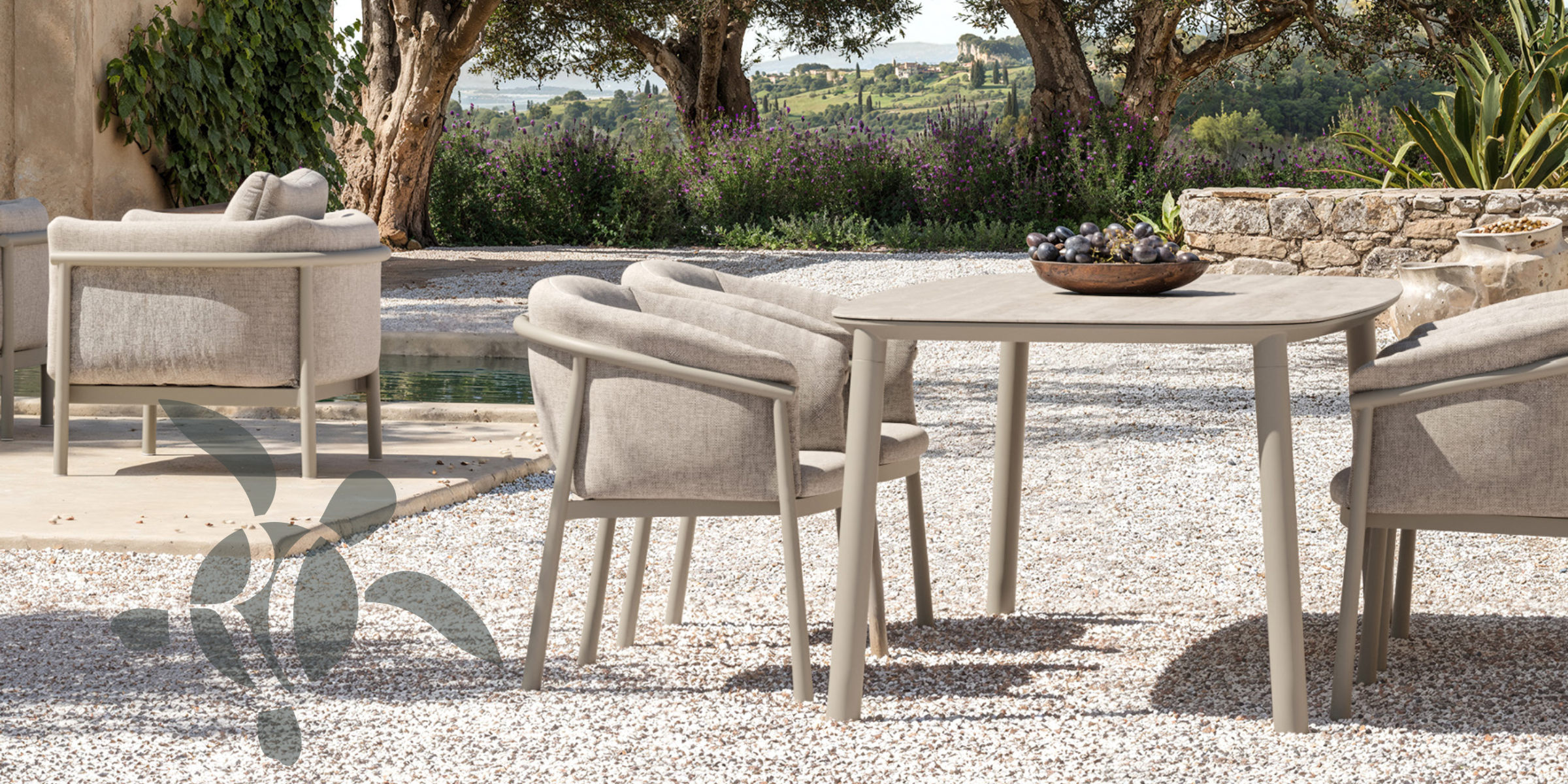 For our Raffles Covers we have chosen a very neutral colour, taupe. This colour is not prominent and will blend into the garden among the trees and plants.